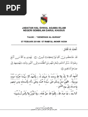 2733 20140207 Khutbah Jumaat Generasi Al Quran Pdf